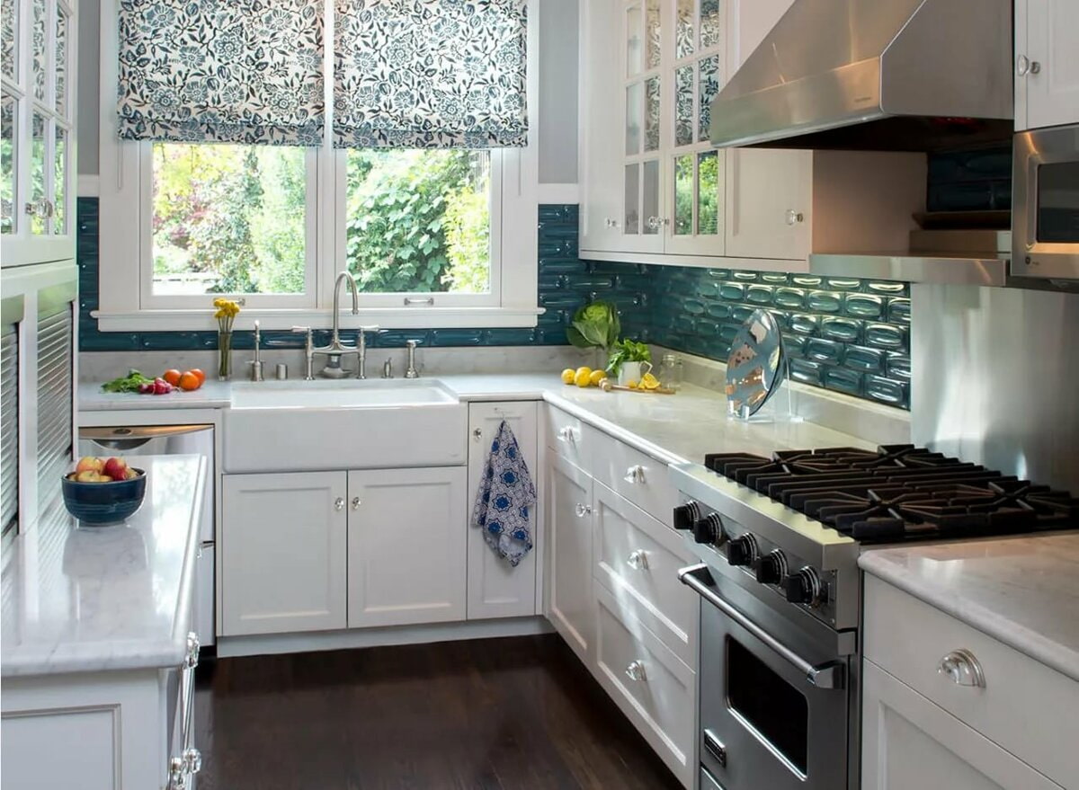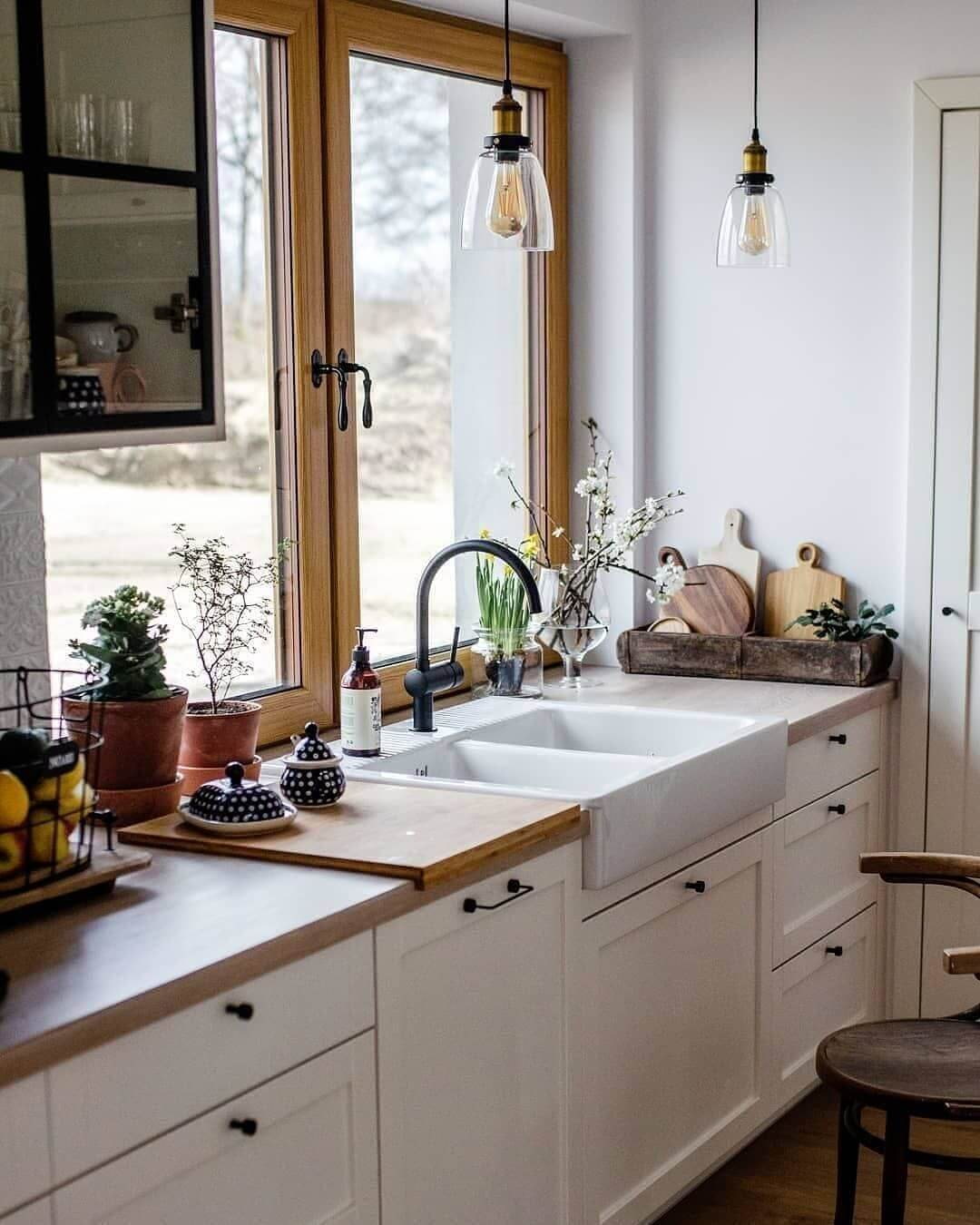 Moving the sink to the window opening is an easy way to make the interior more stylish and relevant. Reception is suitable for all styles: classic, neoclassical, modern, scandi, loft.