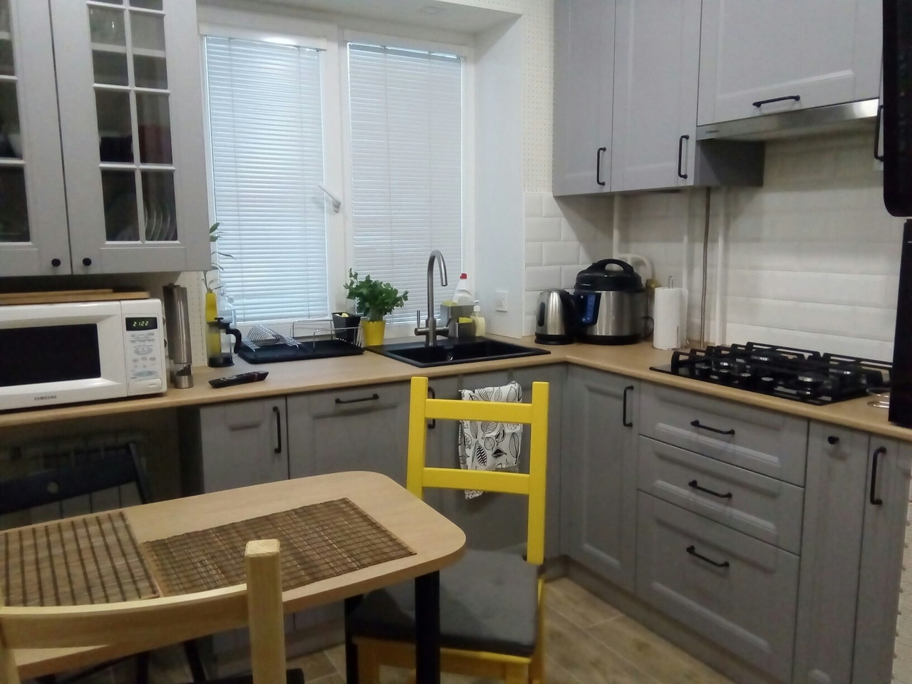 - No dryer... Accustomed to a standard kitchen set, where the cupboard is located directly above the sink, will have to retrain. The dryer can be placed on a wall to the side of an opening, in a base cabinet or on a worktop.