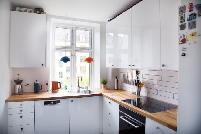 - Increased functionality... Thanks to the transfer of the sink under the window, the working area becomes almost a meter larger. In addition, the new location can contribute to the formation regular working triangle.