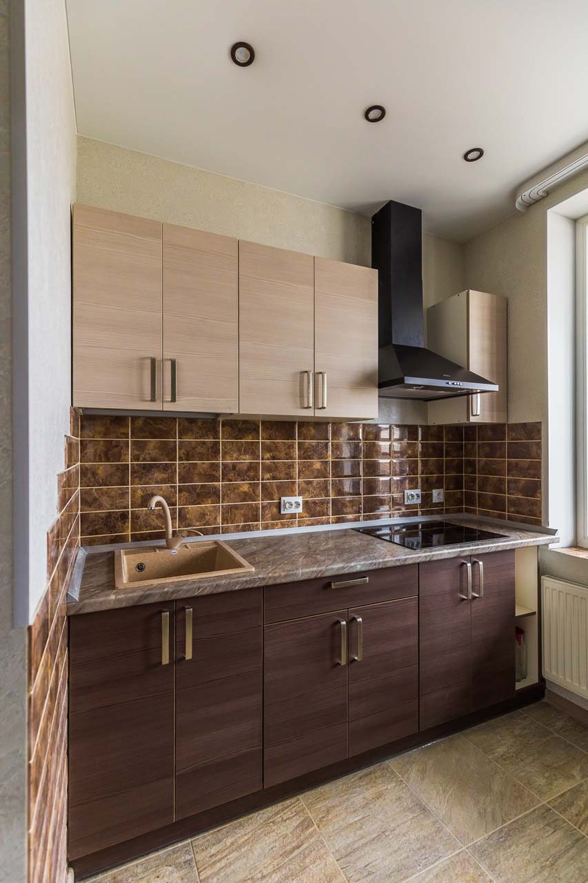 - The shade of the facade in relation to the walls. Most often, it is advised to make the furniture a little darker, but if you have a small kitchen and you want to "dissolve" hanging cabinets, order them to match the walls. For example paint both surfaces white.