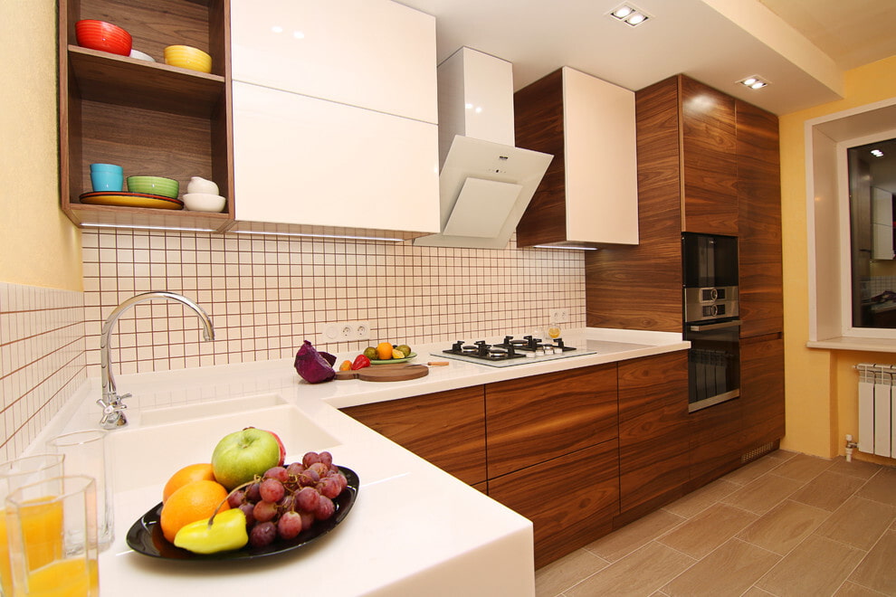 - No more than 3 colors. In a kitchen set, it is not necessary to stop at 2 shades, but you should not use 4 or more.