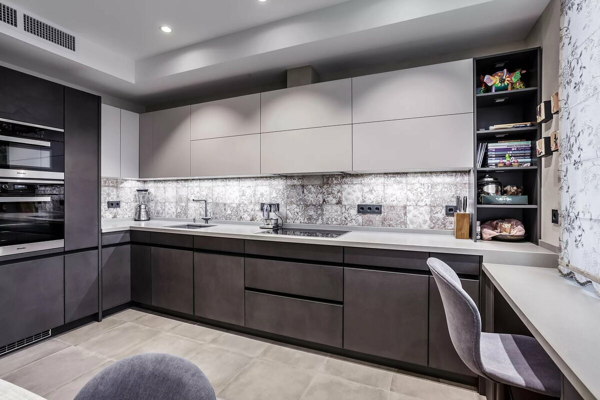 The interior of the kitchen dark bottom light top has its own characteristics, primarily regarding color combinations: