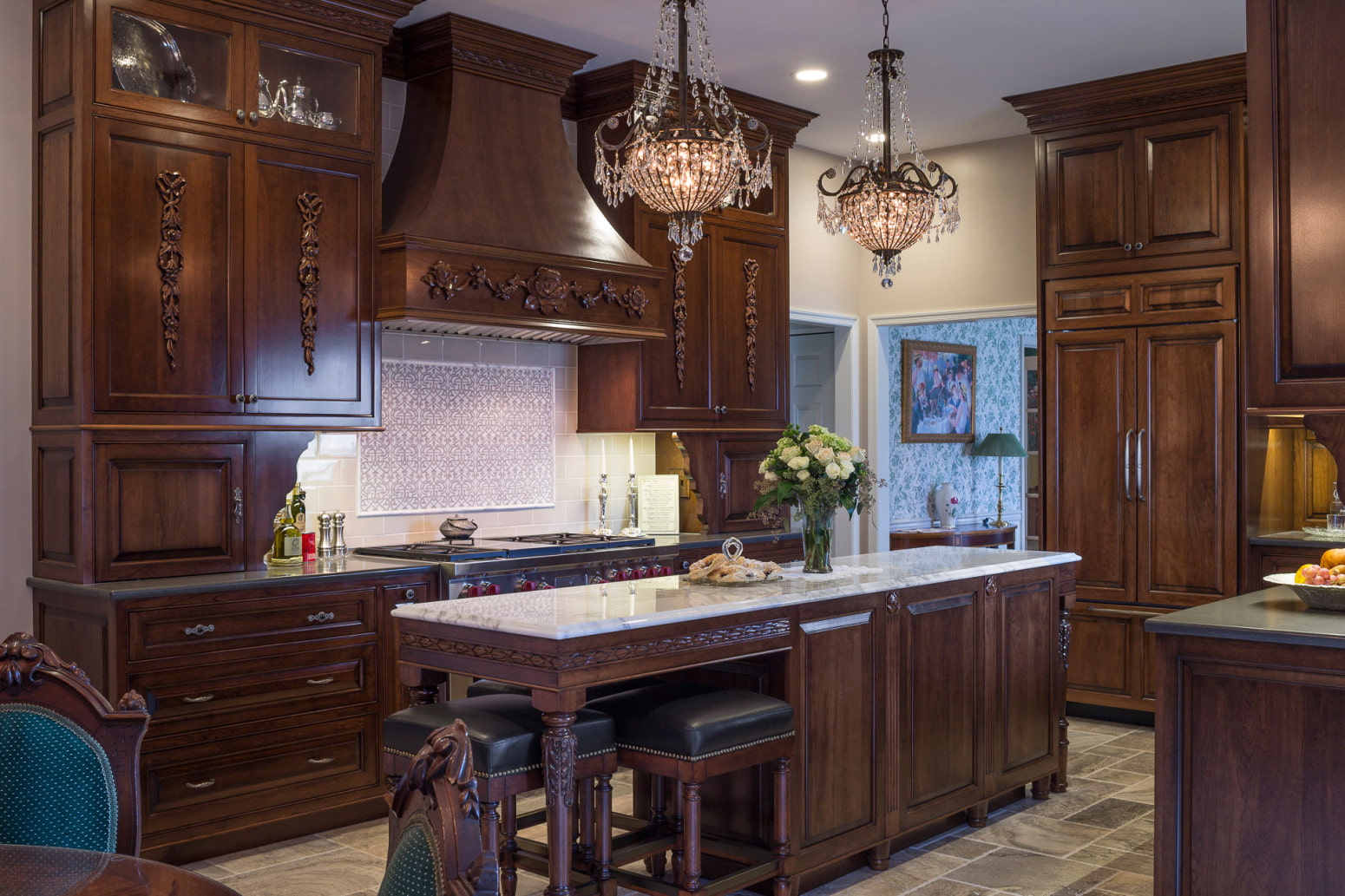 A true symbol of Victorian luxury is the kitchen unit. For its manufacture, only natural wood is used, decorated with carving, forging, mosaics and other decorative details. The surface of the furniture can be artificially aged, differ in different scuffs and antique texture.