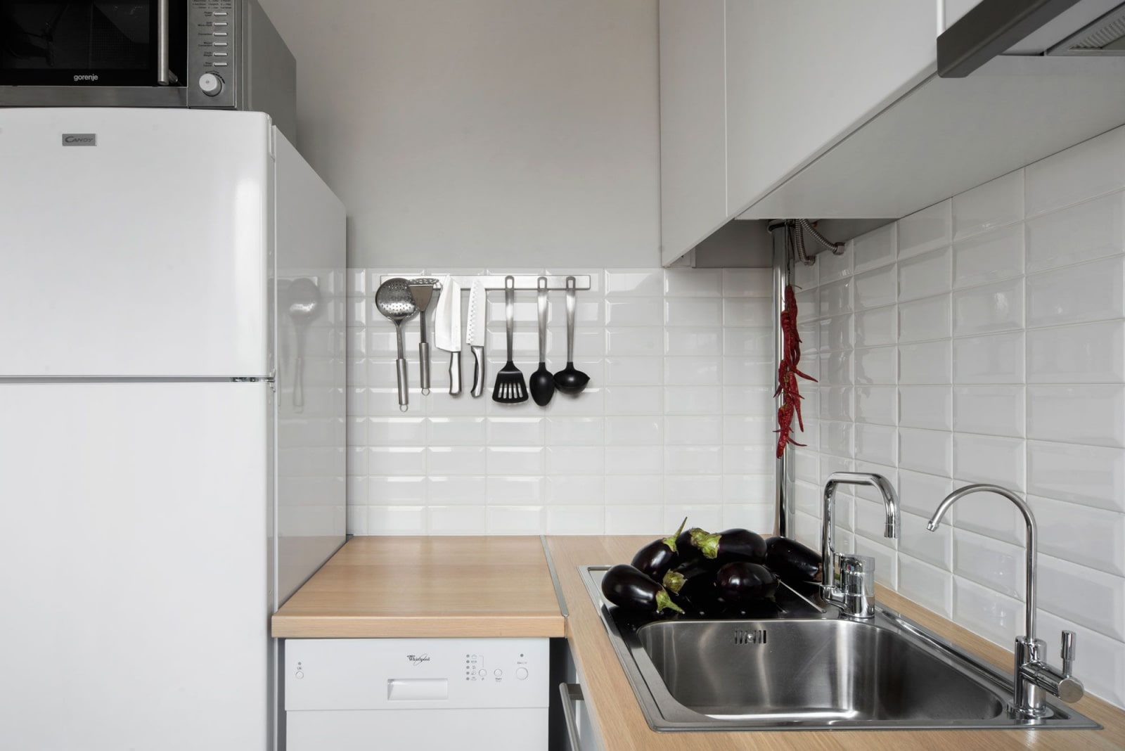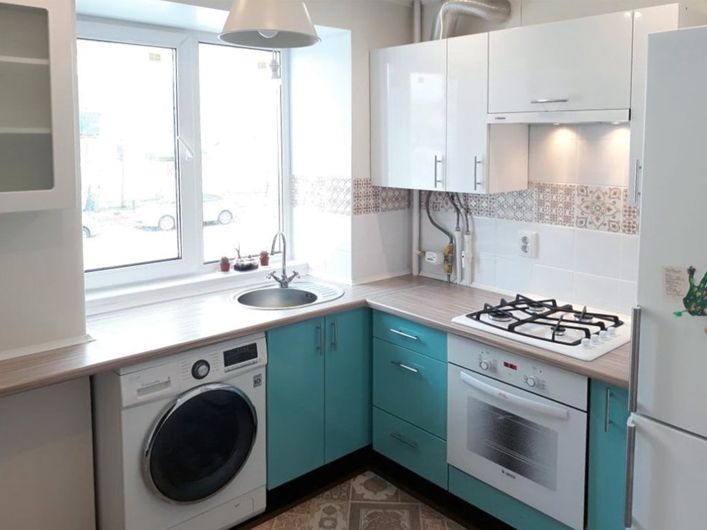 In a small kitchen, it is better to use built-in household appliances: this way the interior will look more laconic, and the room will seem larger.