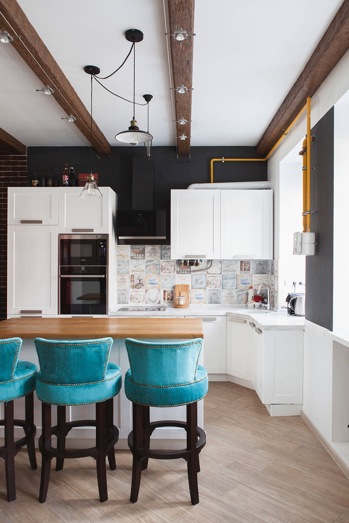 Connoisseurs of modern styles (scandi, loft, fusion and contemporary) are more tolerant of open pipes and chimneys, preferring to leave them in plain sight. Firstly, the boxes deprive the kitchen in Khrushchev of valuable space, and secondly, even "unattractive" gas pipes can perfectly fit into the chosen style.