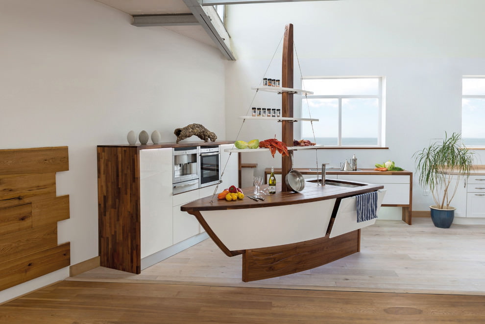 Even the most basic space can be decorated to resemble an oceanfront bungalow or a yacht cabin. Moreover, this does not require colossal costs, just a few well-chosen accessories are enough to let the freshness of the breeze and the splash of the waves into your kitchen.