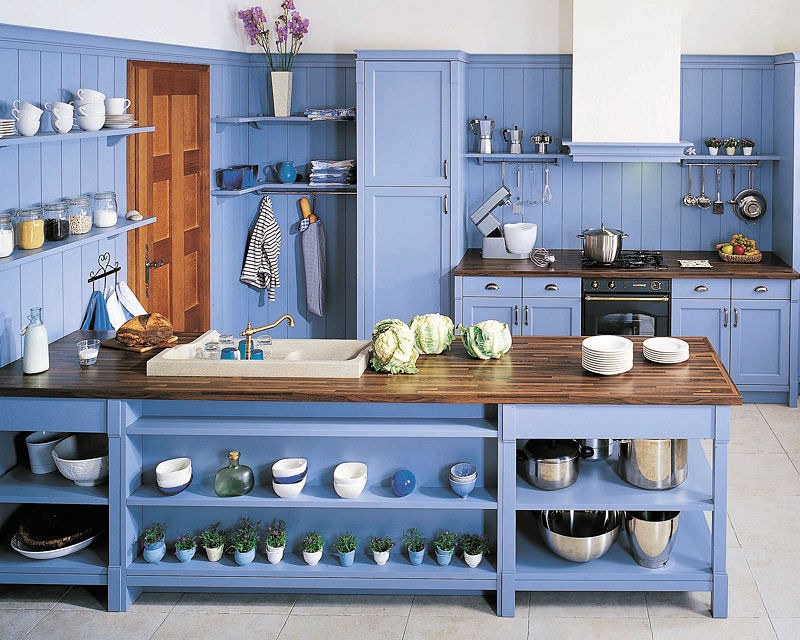 Blue tones and aqua tones are considered cold, so they are best suited for a kitchen facing south.