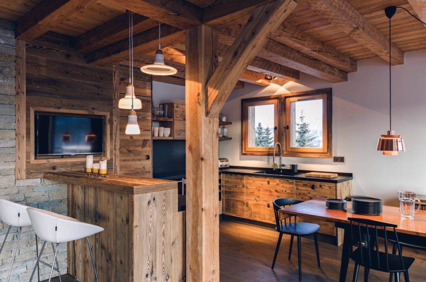 Chalet style is still more about a country vacation. If your kitchen has a window with a beautiful view, try to install a sink underneath to admire the nature while washing dishes or vegetables.