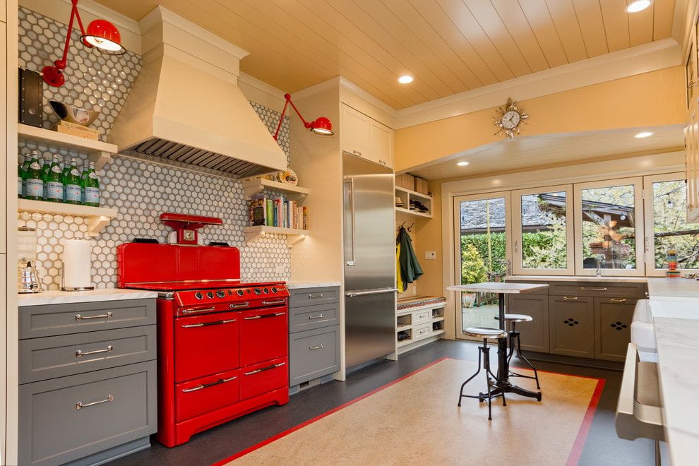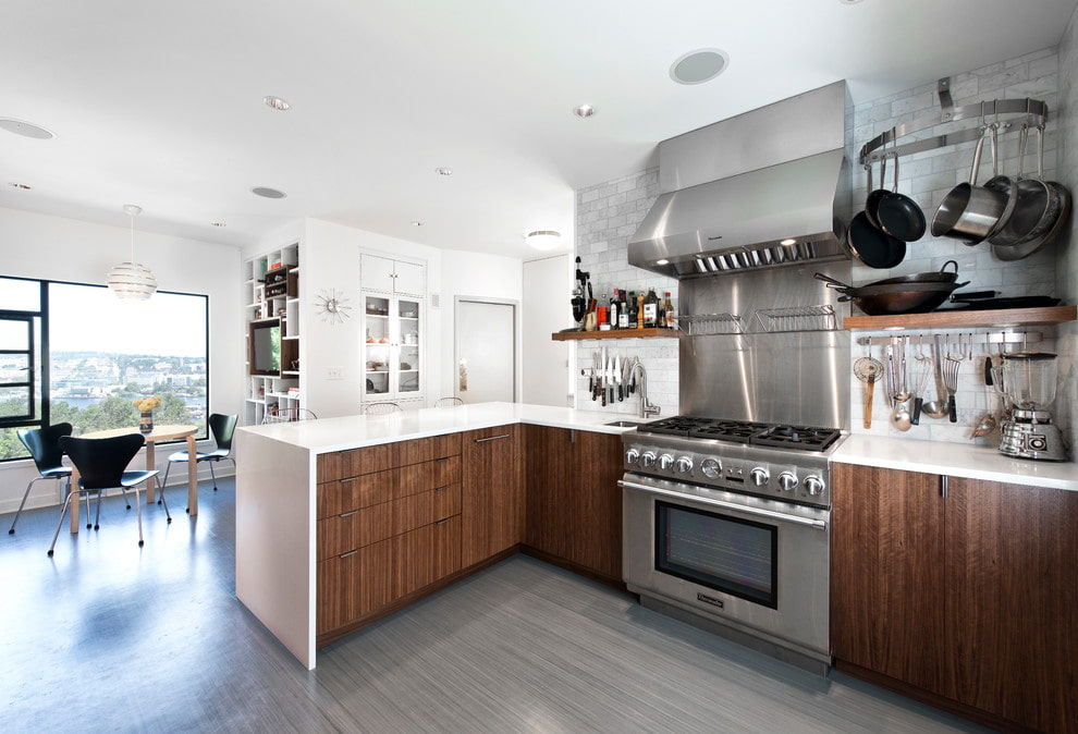 Linoleum has a lot of positive qualities and is the most practical modern material that can be used in any kitchen space, both in an apartment and in a house.