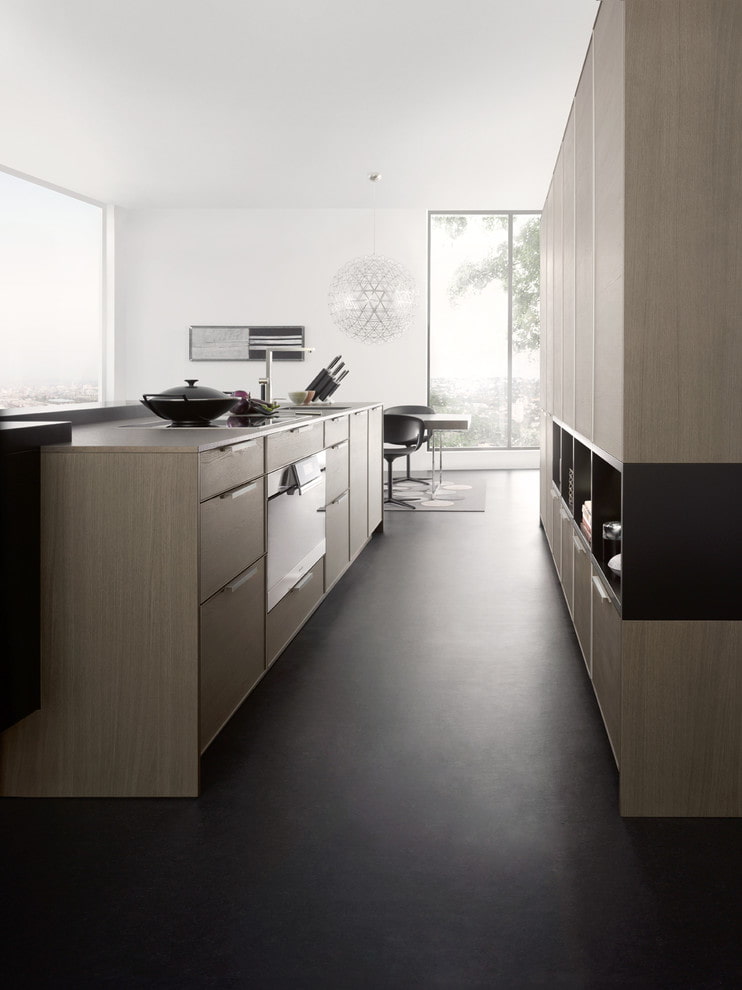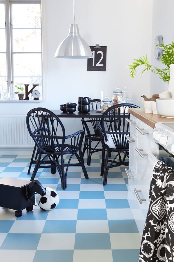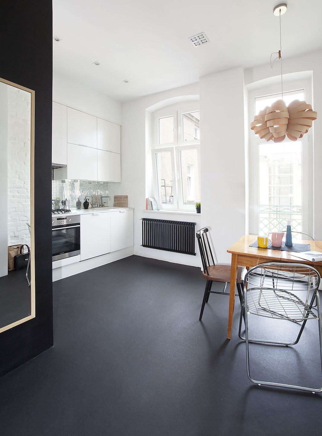 In the photo, black dark linoleum in a Scandinavian-style kitchen.