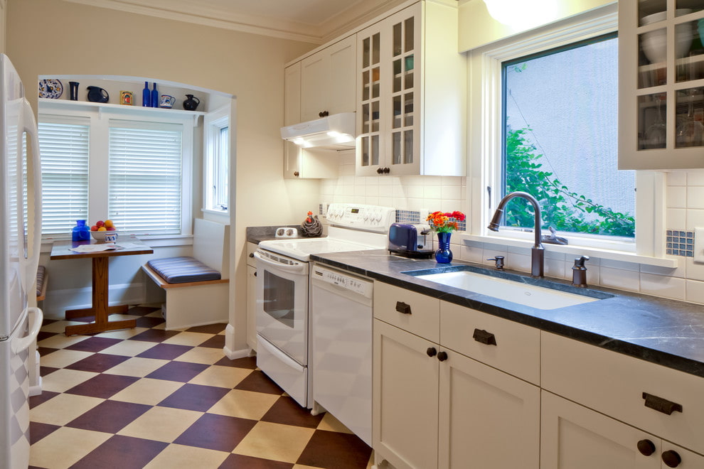 Compared to laminate and tiles, linoleum linen is a better option for the kitchen.