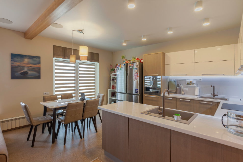 A room where many useful utensils are often prepared and stored rarely looks really neat. Kitchen, especially small, you cannot overfill with objects: this way it looks even tighter.