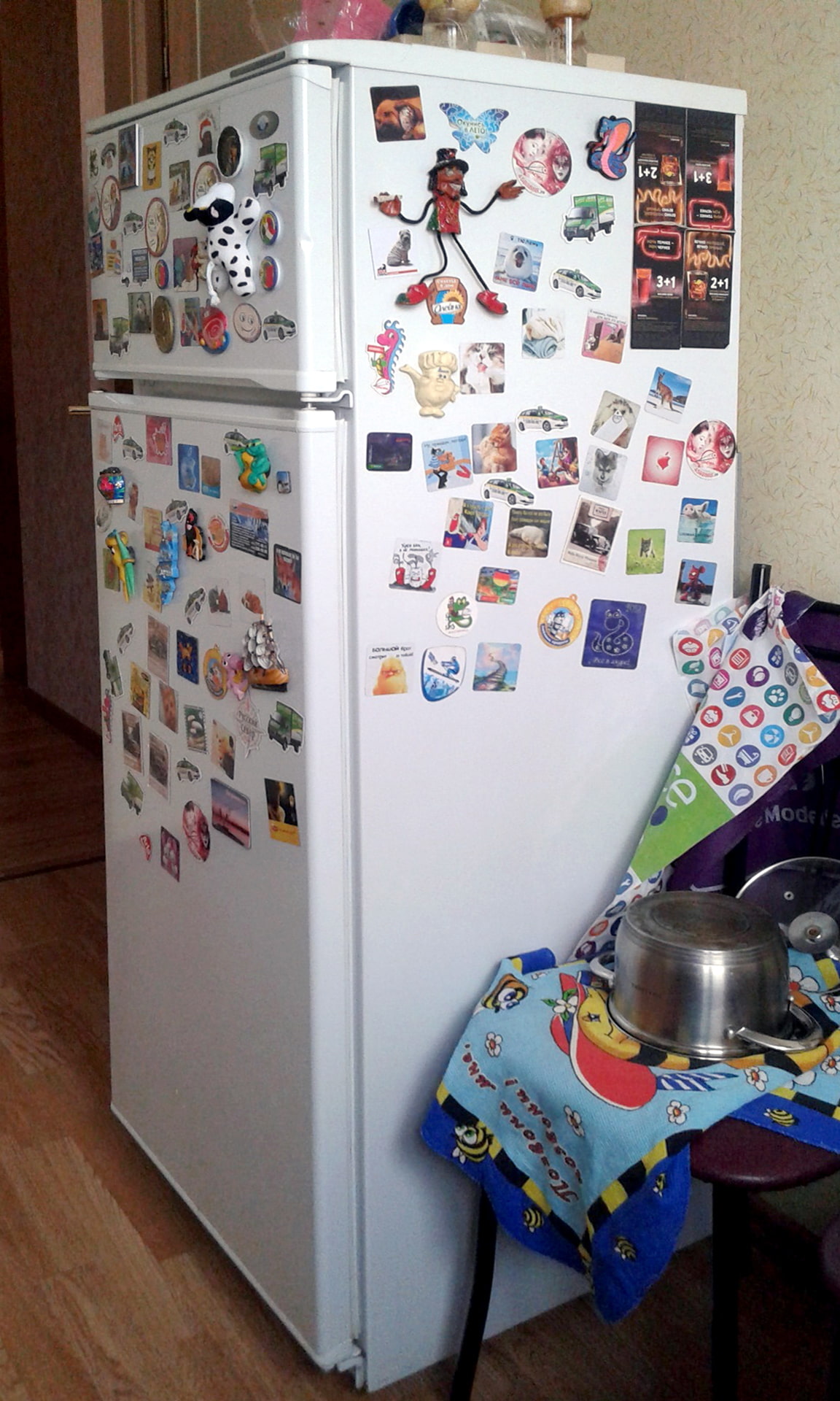 If the refrigerator is completely hung with magnets, it is impossible to find free space on the sash and sides. This creates visual noise and clutter.