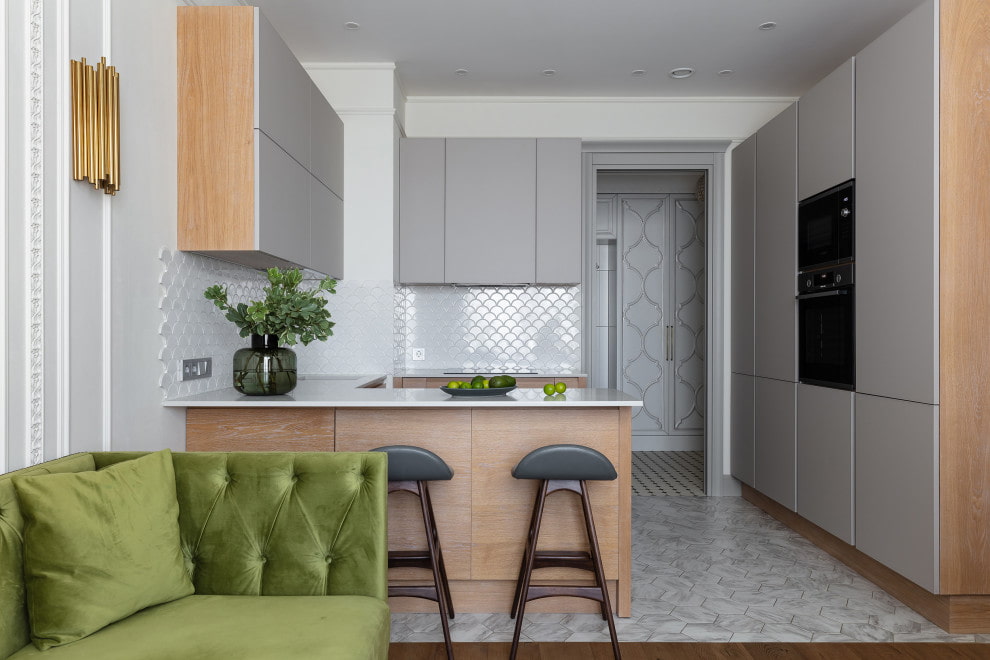 If you dream of a kitchen in dark or saturated colors, the best solution is discreet matte facades. They are also suitable for imitation wood and concrete, which are the latest trend in modern design.