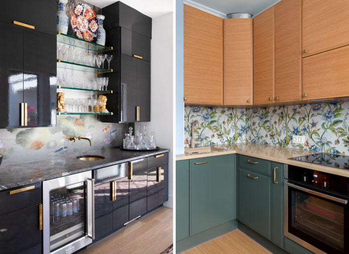In case you can't decide, combine two textures with each other: install glossy facades on the upper cabinets, and matte ones on the lower cabinets. In this case, the color of the top and bottom can be radically different.