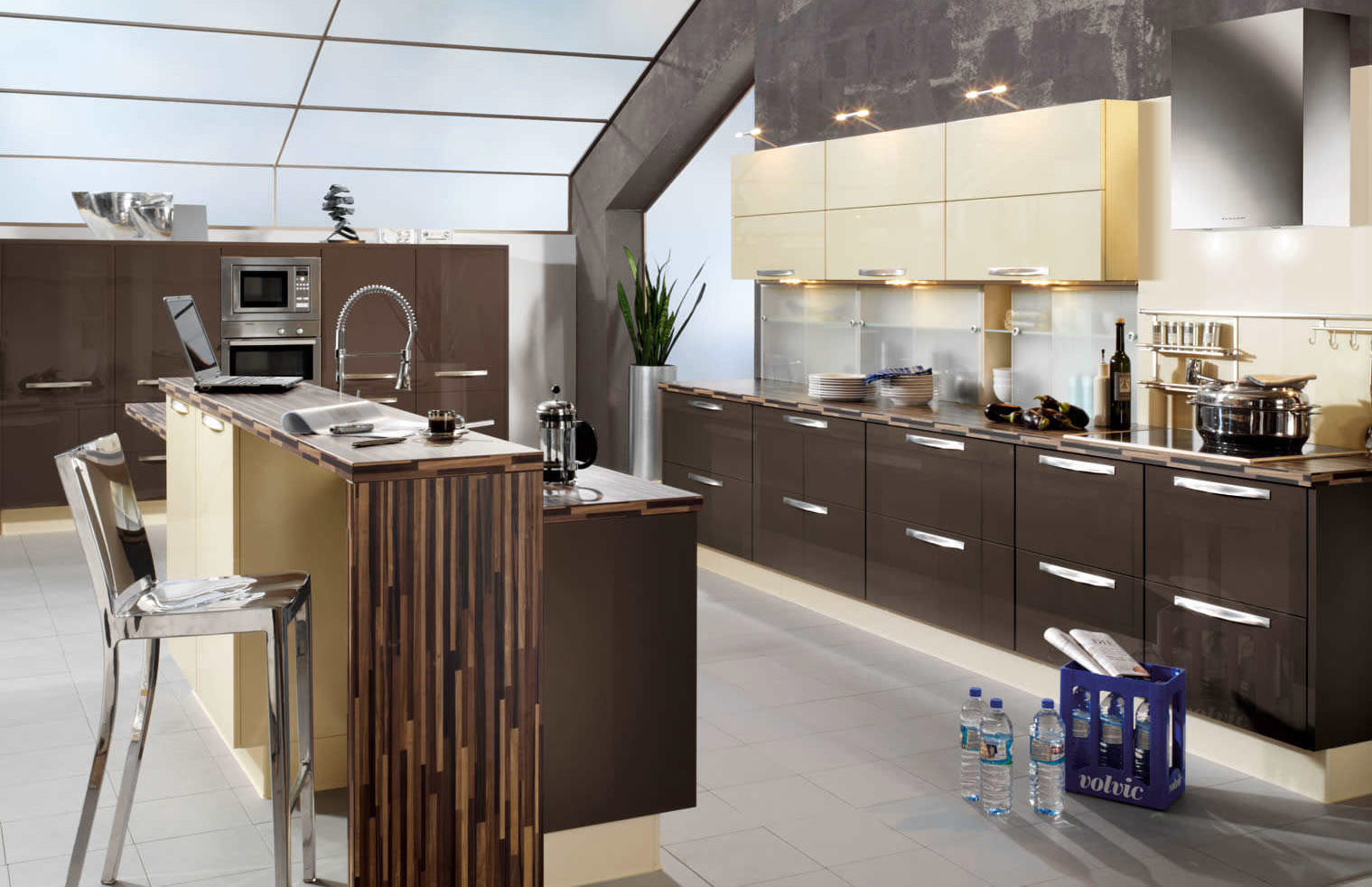 The main thing is to choose the right materials surrounding the unusual material. The juxtaposition of metal with plastic, wood, plaster, brick wall decoration and glass elements looks harmonious, especially if the kitchen is supplemented with stainless steel appliances.
