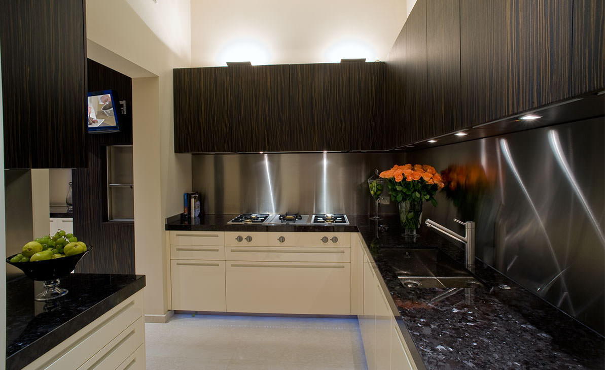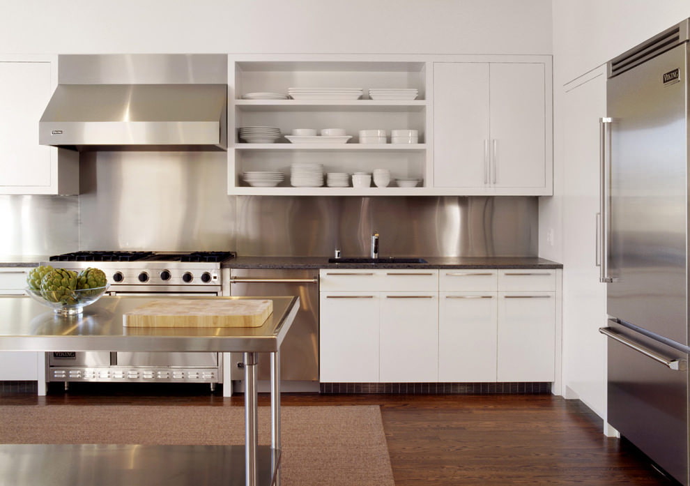 Some styles, such as hi-tech or industrial, as well as loft, can be considered the most suitable for applying a steel finish to the cooking area. But the designers believe that the steel apron is appropriate both in the classic interior and in some modern styles.