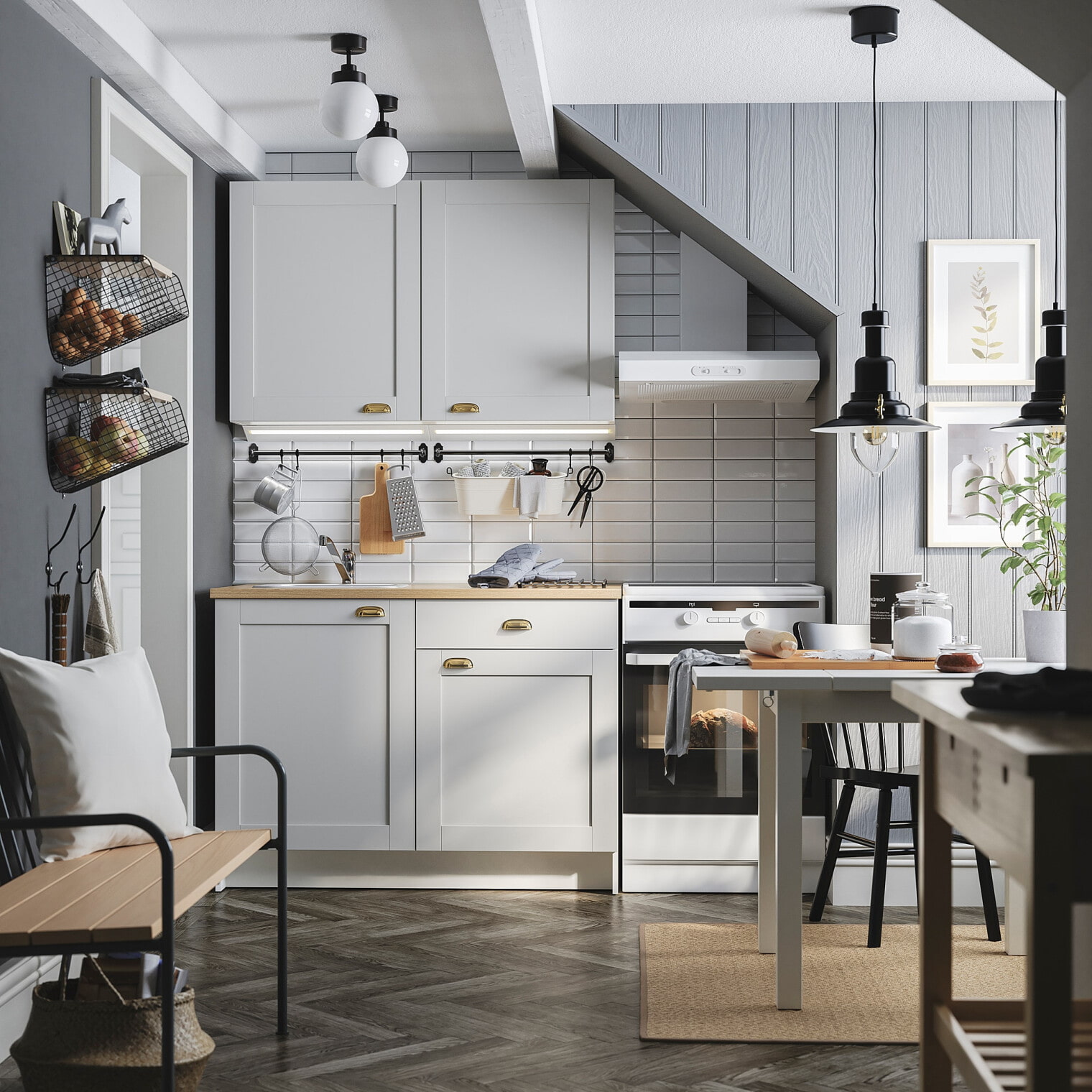 The assembly of a modular kitchen can be carried out in various combinations by choosing cabinets that are suitable in terms of filling and size.