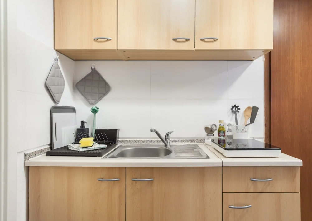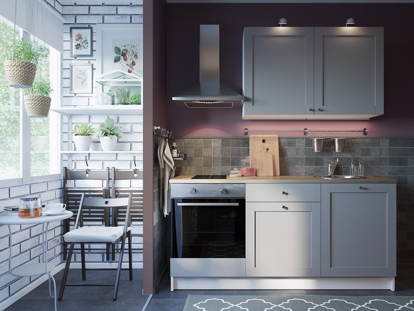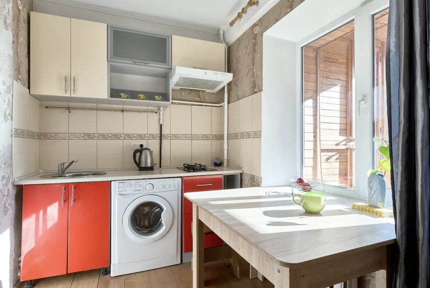 Ideal for small apartmentssince takes up little space. But at the same time, linear layout less work zone and limited storage space.