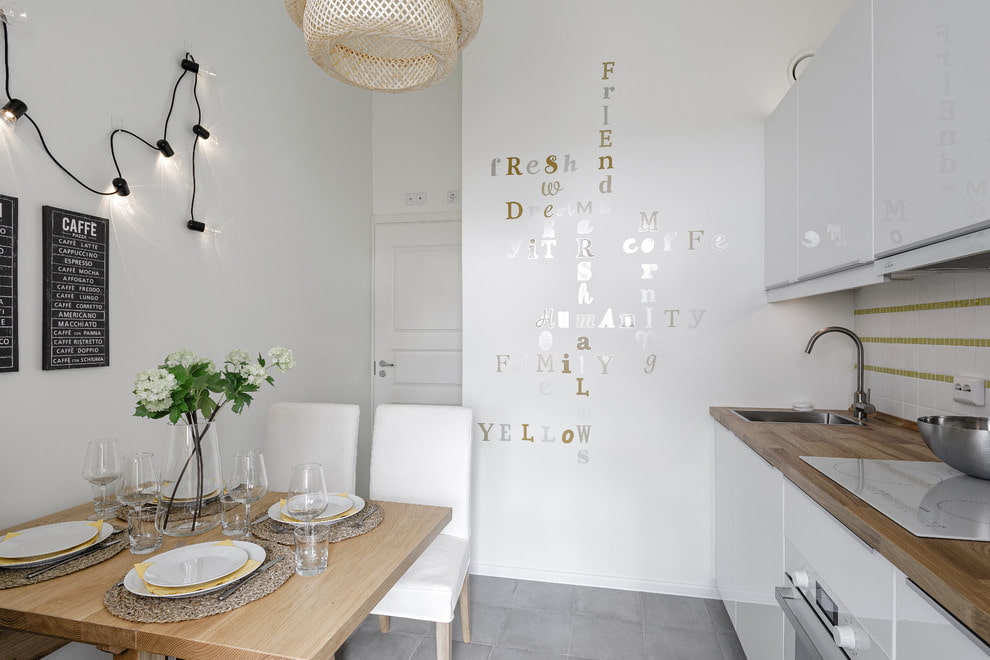 Once the door is installed, you have a choice: to close it, preventing odors from spreading, additionally including hood, or open to infuse the apartment with the pleasant aromas of peeled tangerines, sliced cucumber or homemade baked goods.