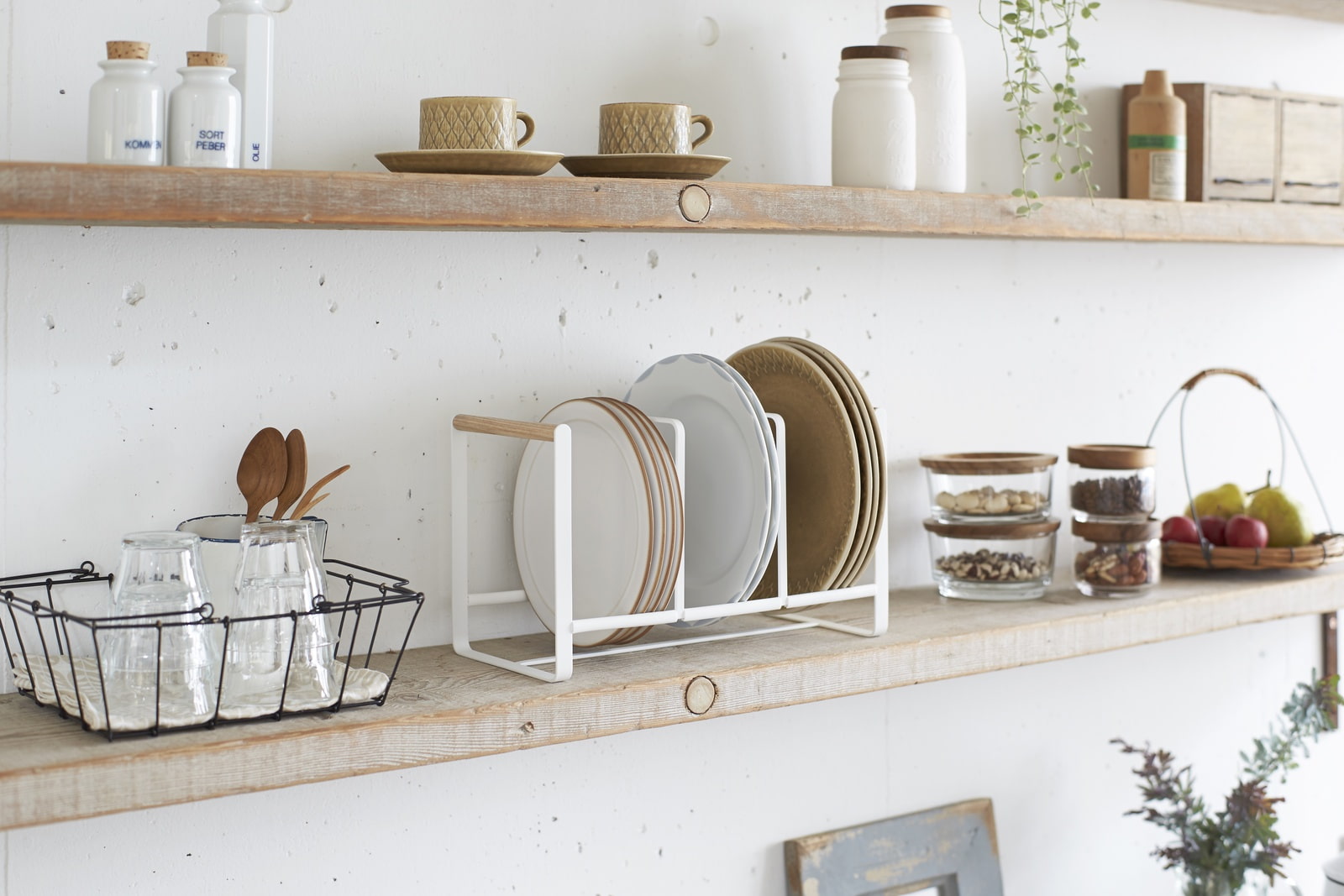 Small racks will allow you to squeeze the maximum out of the empty space in the cabinet: food, cups or glasses will be distributed on two levels, and you do not need to screw an additional shelf. Such an organizer is also convenient to use on the kitchen windowsill.