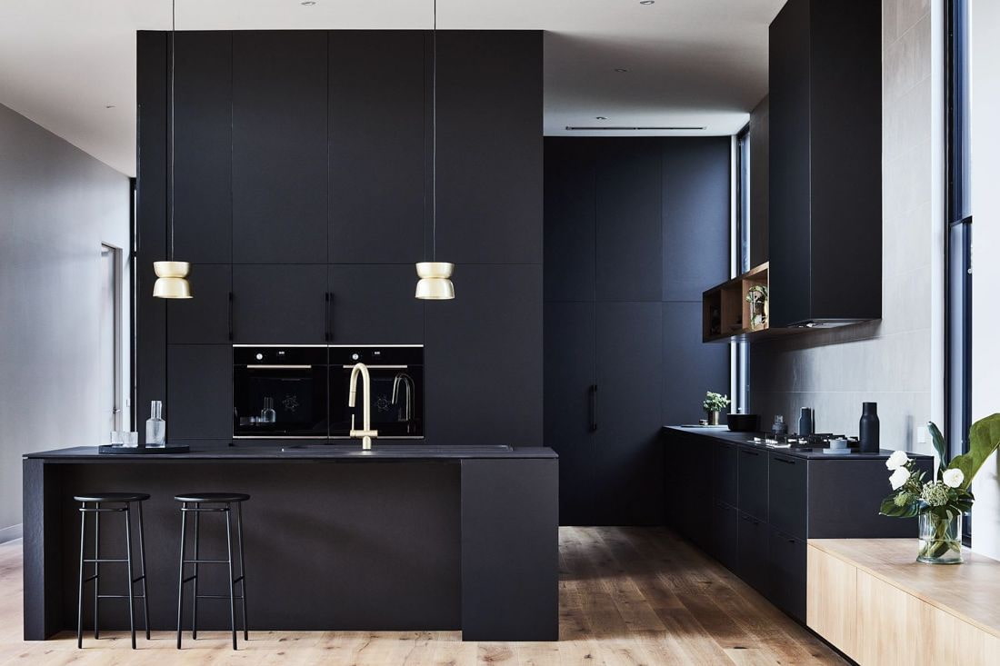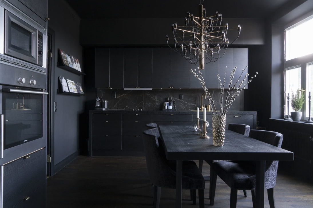 The black kitchen combines a laconic, exclusive, sophisticated and self-contained interior. The dark aristocratic scale gives the atmosphere a showiness, luxury and a certain mystery.
