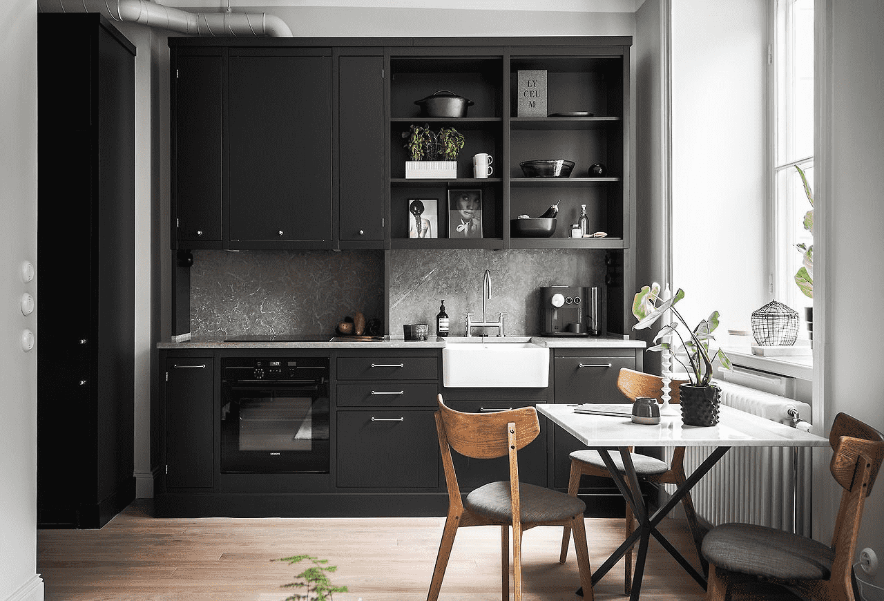 Gray and black kitchen design