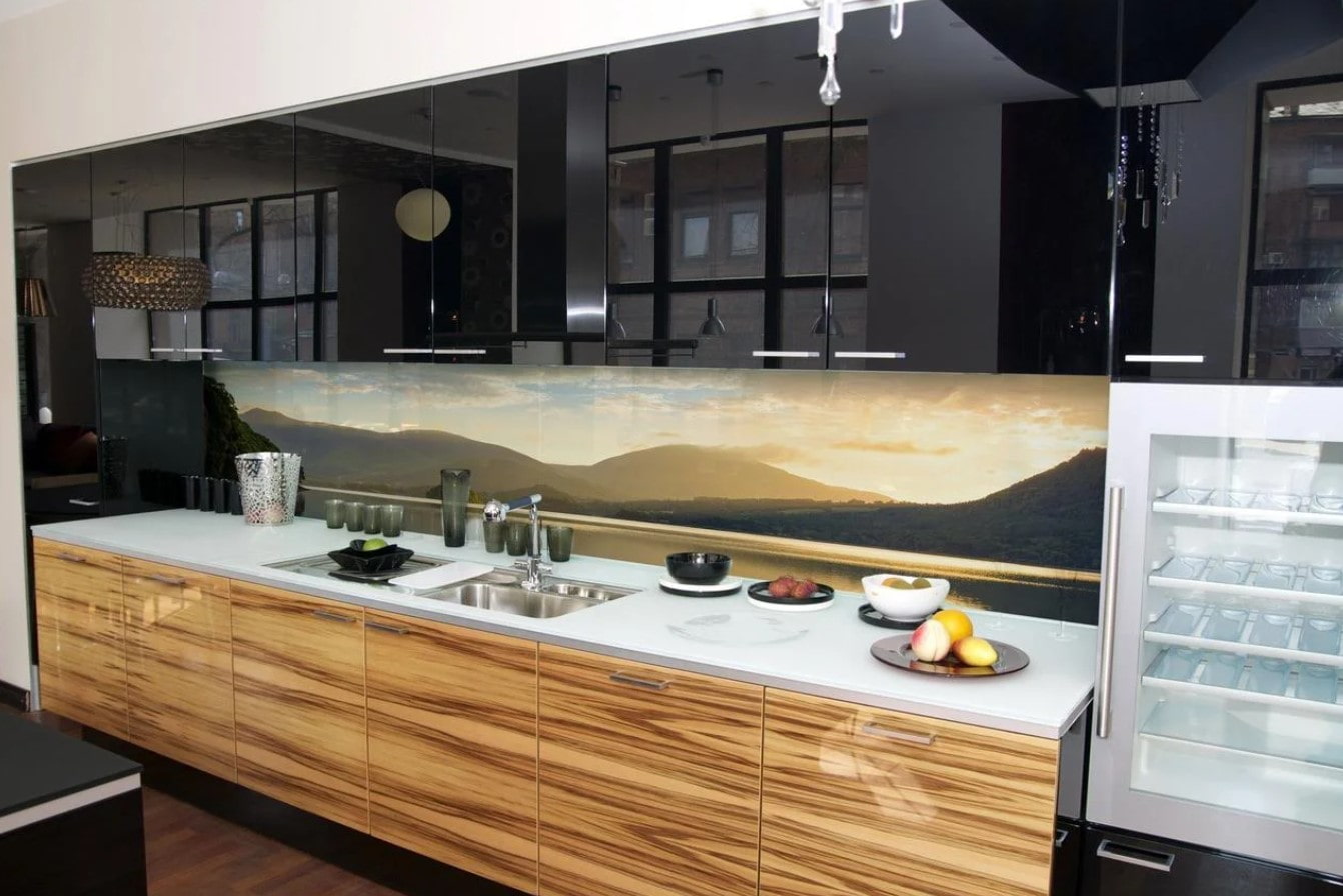 When choosing an apron design, do not forget that no matter how beautiful and clear the pattern is, it will not hide the origin of the plastic: therefore, pass it off as brickwork or glass panel will fail. But it's worth a try! Some acrylics look very stylish - look at the photos in the gallery and see for yourself.