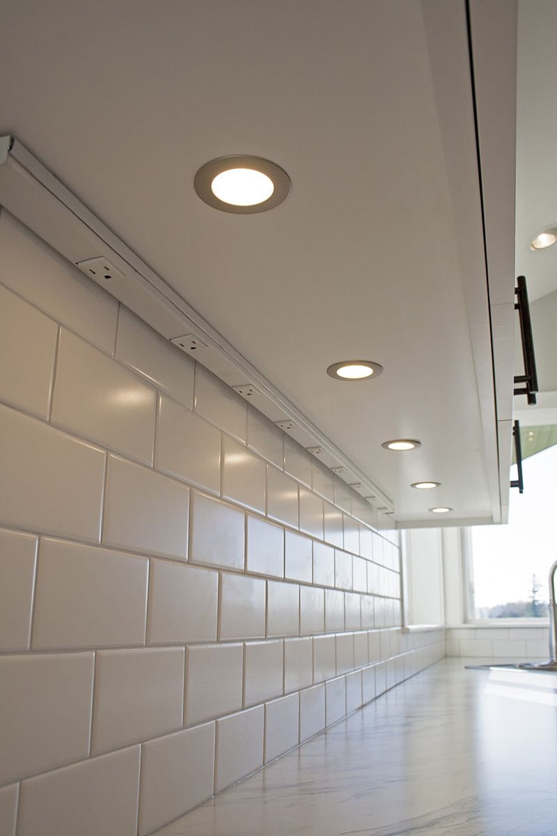 Does one highlight line seem boring? Route additional lighting along the top of cabinets or shelves, or install the system in a kitchen plinth.