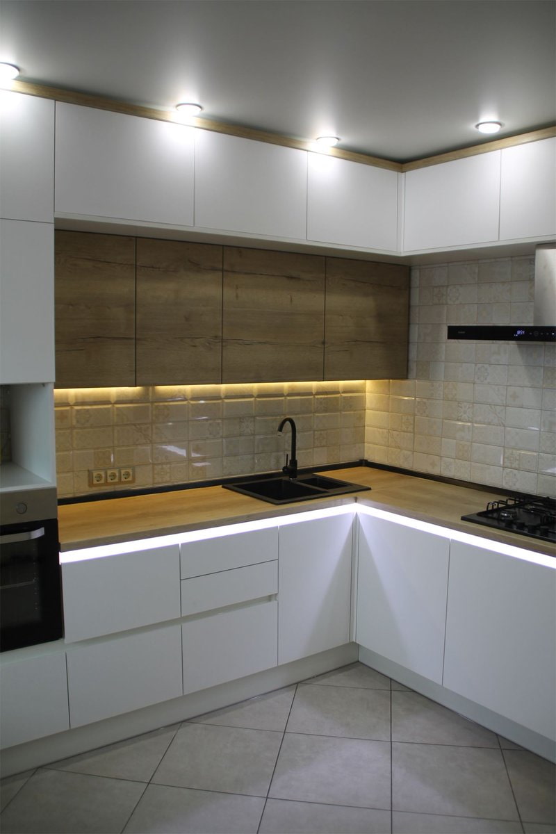Kitchen lighting with LEDs is an effective and aesthetic solution that can be installed in just 1 hour and will help create a comfortable atmosphere for cooking.