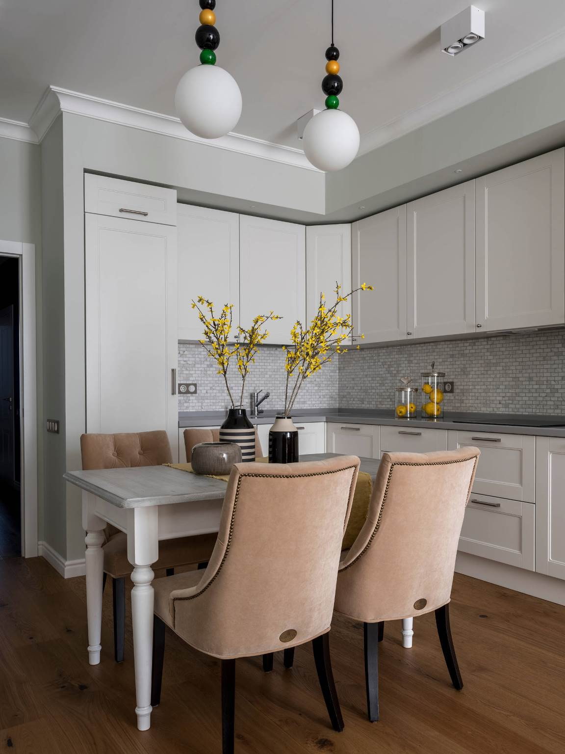 Quieter shades such as olive, dusty pink or lemon will find their place in gray and white kitchens, decorated in classic and rustic styles.
