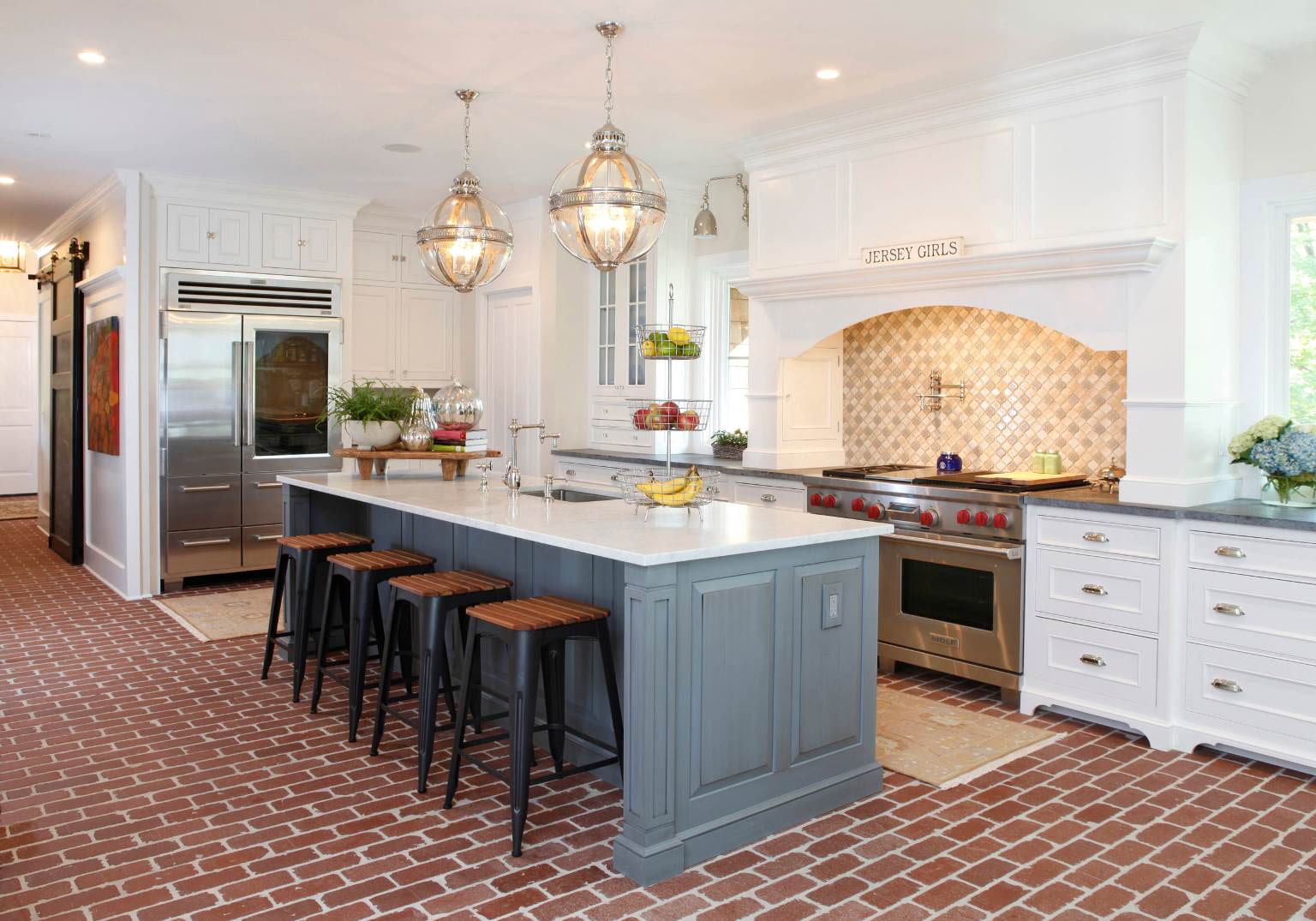 Brickwork, The "heart" of the loft, can be of a natural color, painted, or it can be raw, worn and deliberately rough. In any case, it will look great in a gray and white kitchen, and on the walls, and even on the floor.