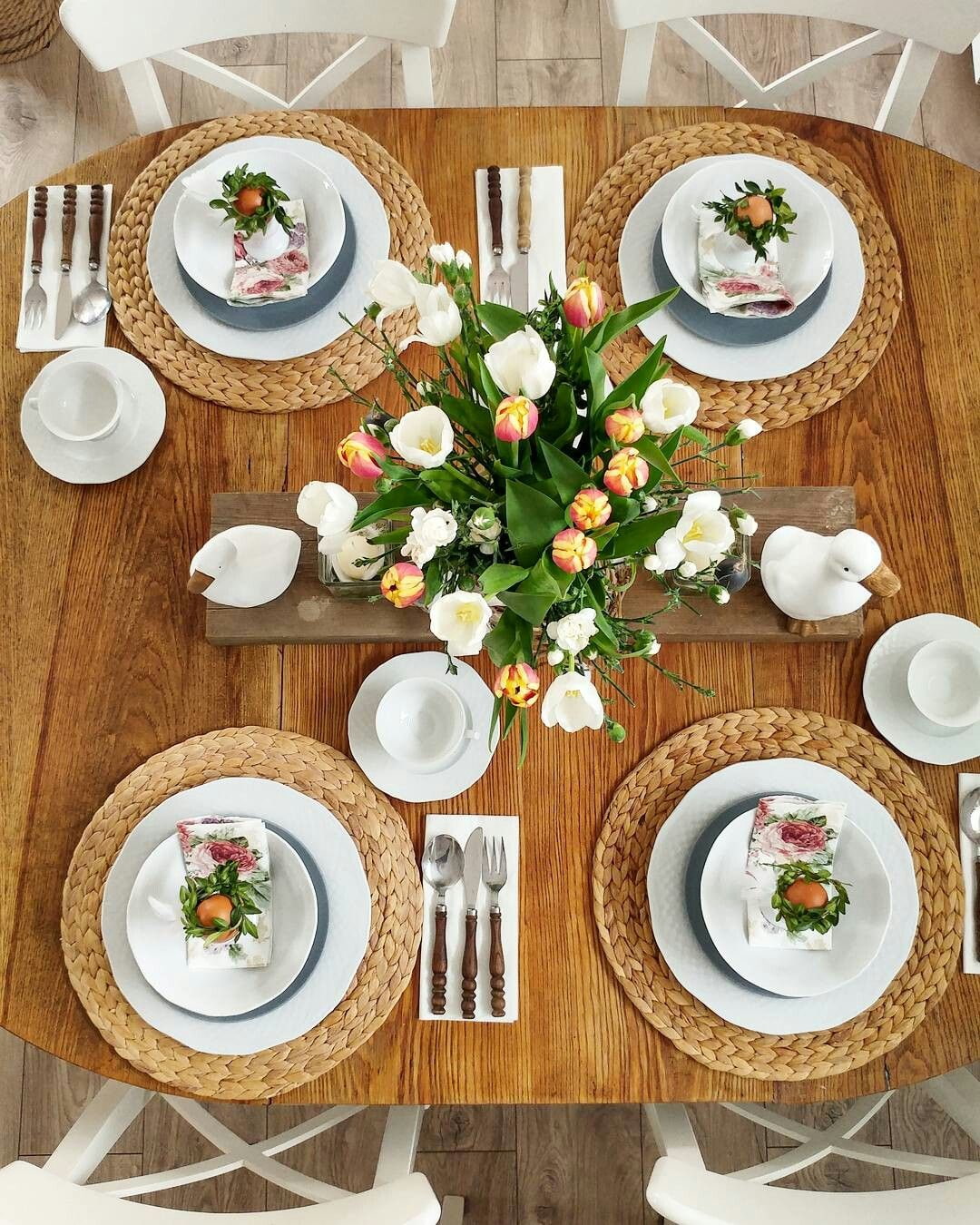Decorative details on a round or square table are placed in the center, on a rectangular, oval - along the center line parallel to the long side.