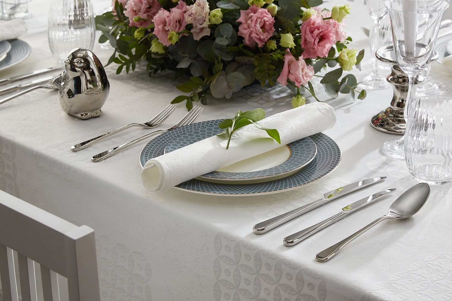 Lay a beautiful tablecloth, lay a bright path, pick up napkins to match, put flowers.