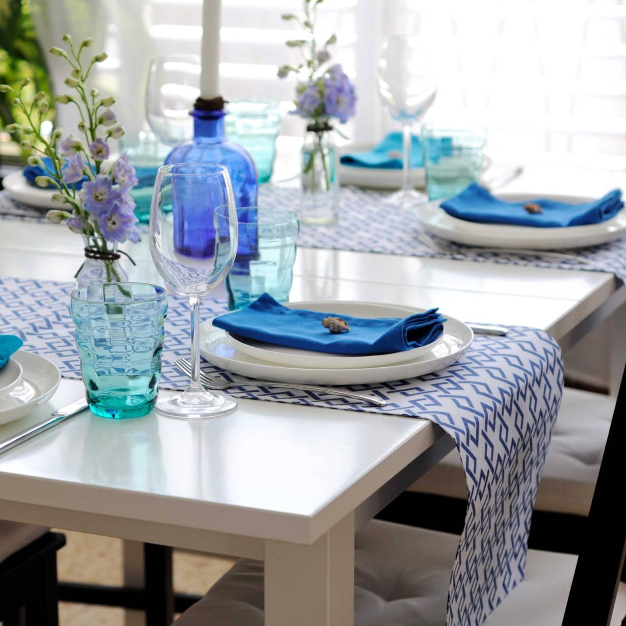 Advice! For a more aesthetic result, try to combine shades of tableware and decor. Example: serving a white table with blue glasses is complemented with blue napkins or a tablecloth with a blue print.