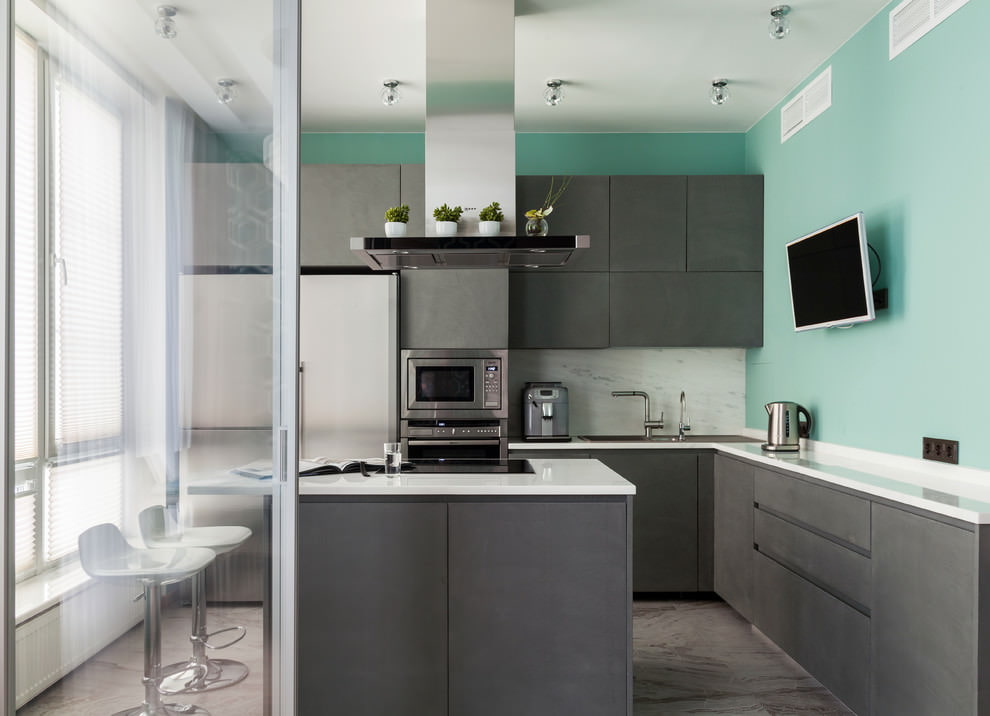 Walls should serve as a backdrop for kitchen furniture, so they can be a neutral shade of pink, brown, pistachio, beige or white. Gray walls can blend in with furniture, so it's best to choose light shades.