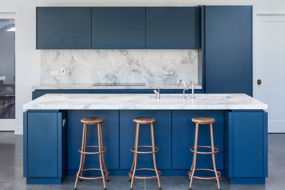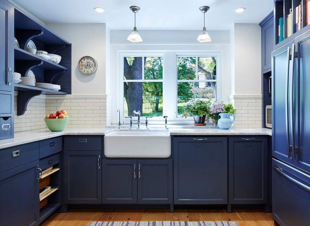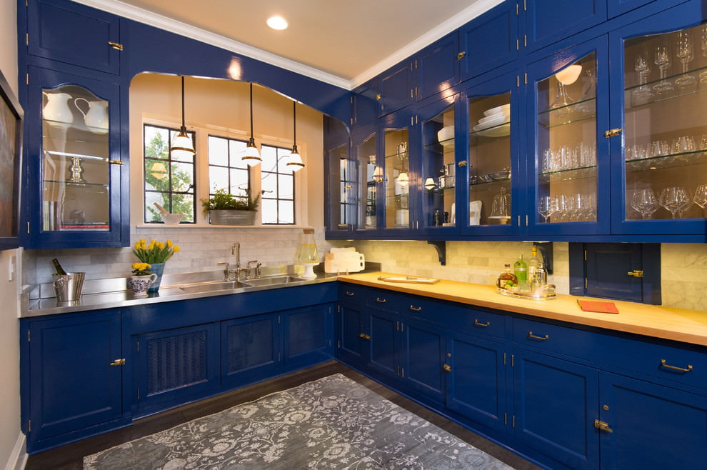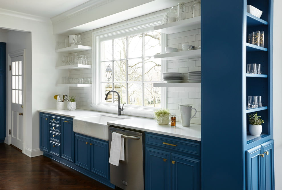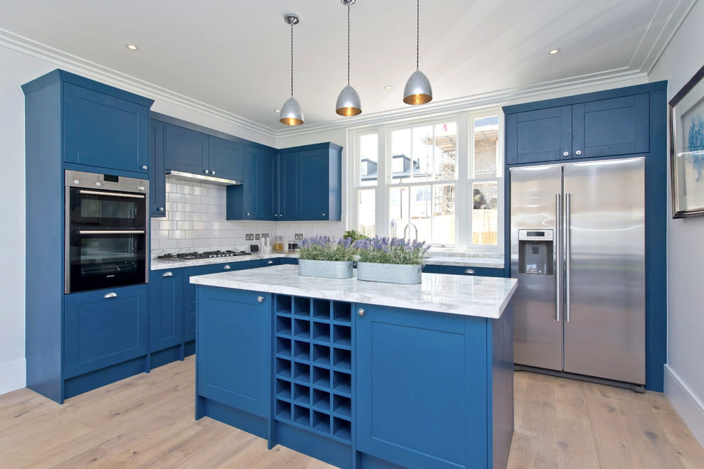 A blue kitchen set will be a stylish and unusual solution. Choosing the right shade of blue, the design of the kitchen will turn out to be light and cheerful or modern and bright.