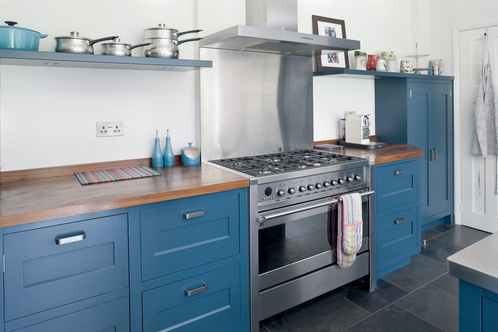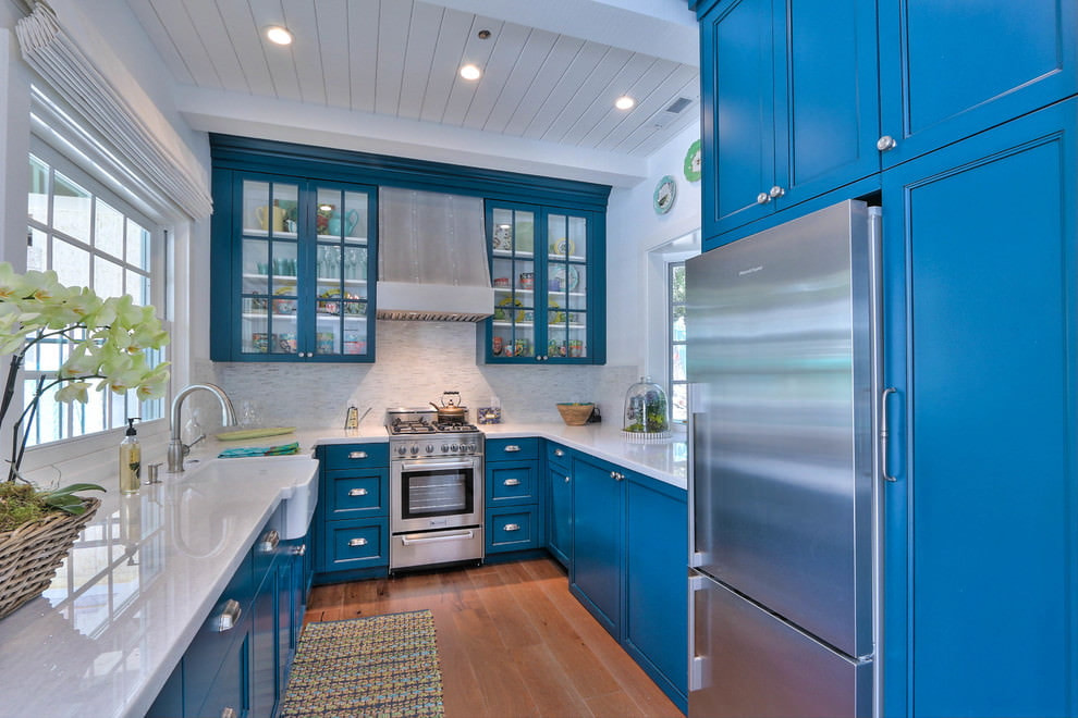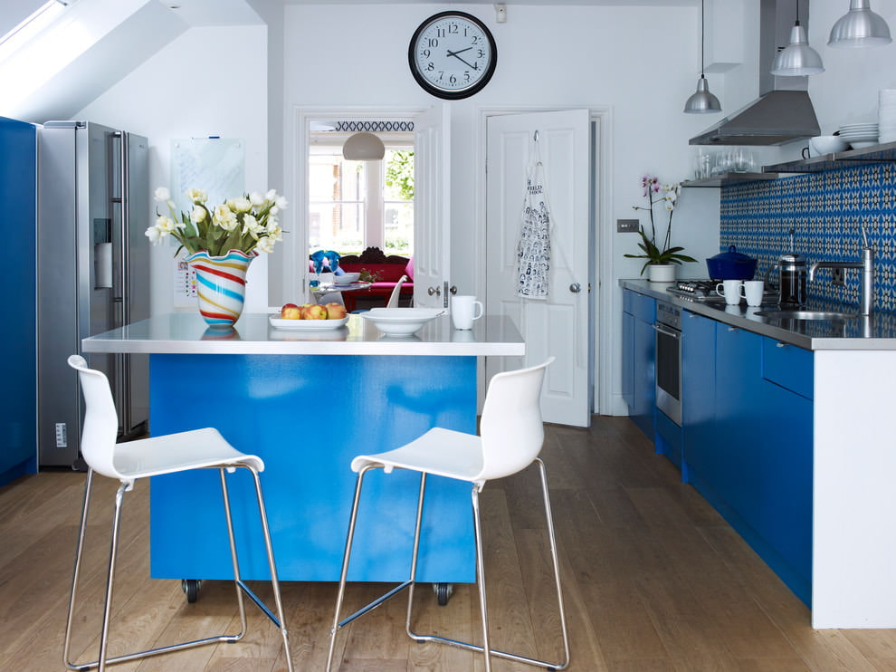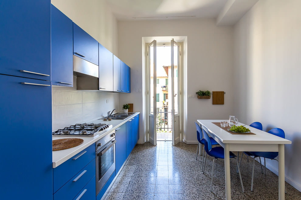 A room oversaturated with blue can have a negative effect, cause apathy and blues. A blue kitchen set will look harmonious with a light blue finish.