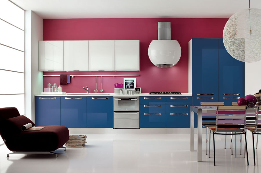 A romantic combination. Depending on the saturation of the colors, the character of the kitchen will differ. Bright blue and pink shades look bold and unusual. Pastel shades make the interior light and carefree.
