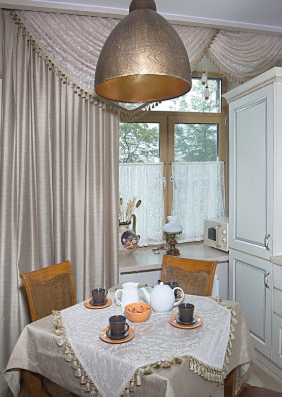 Advice! If your kitchen has a folding table, it is better to get two options: for example, an everyday tablecloth for a round table and a festive oval tablecloth (since the tabletop is usually pushed apart for the holidays).