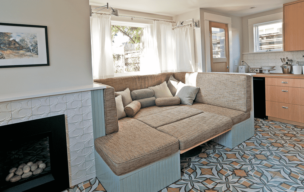 - The sleeping place should be combined and match the style of the interior, so it will represent not only a piece of furniture, but also an original design element of the kitchen.