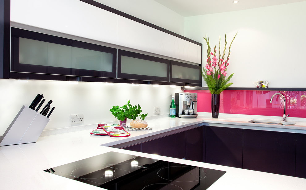 Glass is easy to care for, it is environmentally friendly and has an attractive appearance, therefore a glass apron is the simplest option for protecting the workspace and decorating the kitchen interior, emphasizing the individuality of the environment.