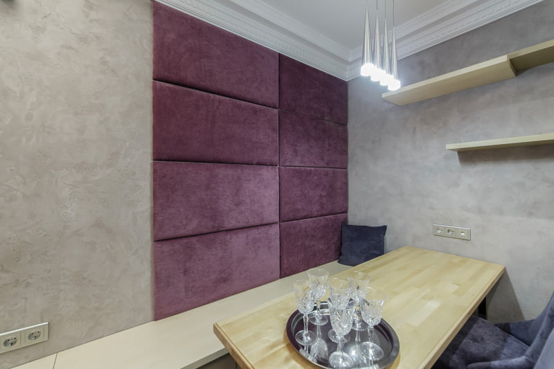 Decorating the wall near the dining area with a mirror is a non-trivial and functional solution. The canvas instantly increases the space, so for a small kitchen this is a great option. Reflection gives an airy atmosphere, complicates geometry and even increases appetite.