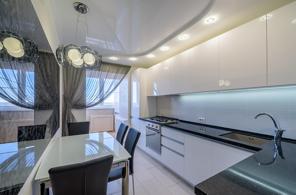 They can be of different widths, depending on the location of the horizontal or vertical, they can visually expand the kitchen space or raise the ceilings.