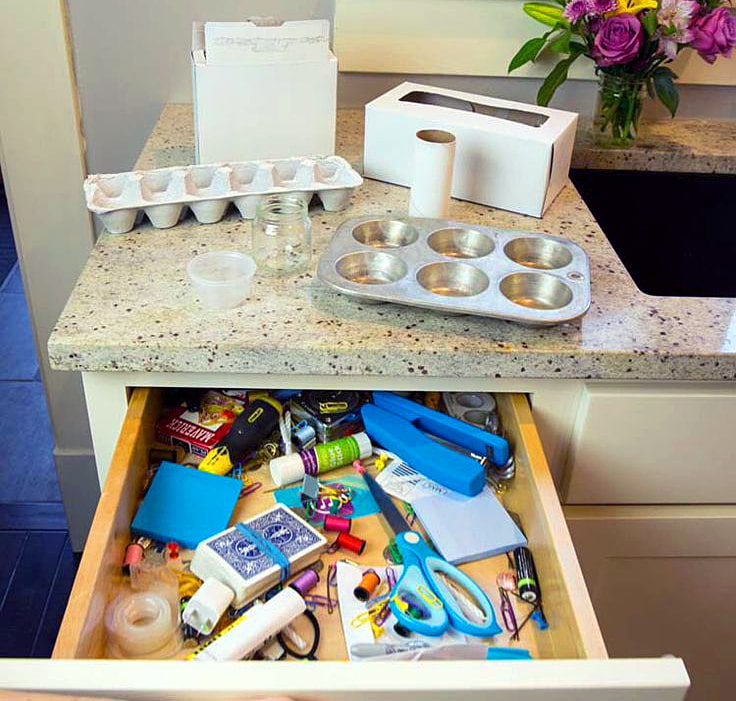 All these covers, flyers and magnets, receipts, packages, napkins and boxes settle on all available surfaces and spoil the look of the interior. Having thrown them away, it is worth making it a rule not to accumulate trash and use the shelves and countertops for their intended purpose. It will become much easier to clean the kitchen.
