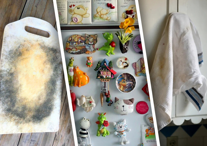 A product that has been used in the kitchen for a long time accumulates a lot of pathogenic bacteria. Wooden or bamboo - if the board has darkened, throw it away without mercy: mold has already penetrated deep into the fibers and will enter the food.