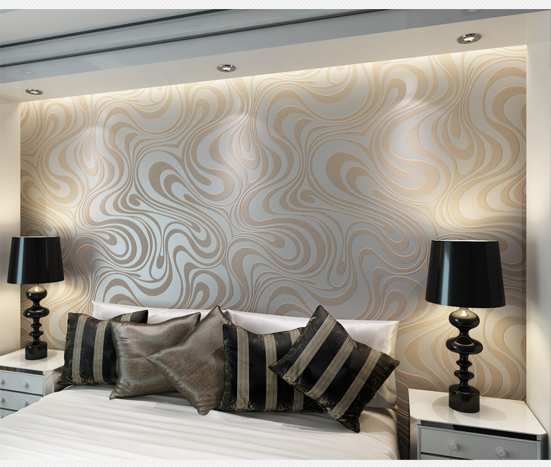 You can decorate the wall with wallpaper with an abstract pattern, this option leaves a wider field for the selection of other interior elements, and the choice of texture allows you to create various effects.
