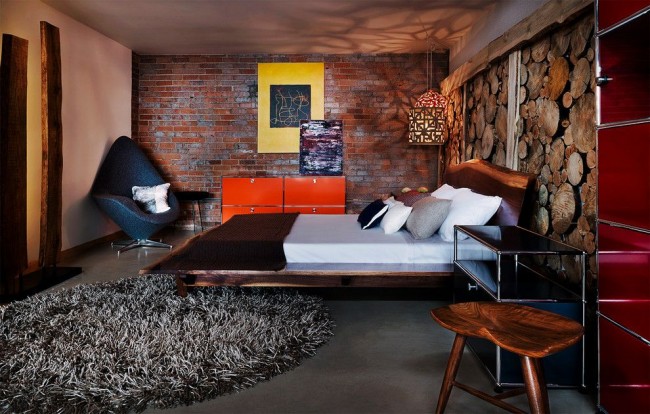 Often, wall murals are used to create a bright accent. The accent wall opposite the bed can be decorated with photo wallpaper using other finishing materials: it can be textured wallpaper or paint in a bright, saturated or contrasting color.