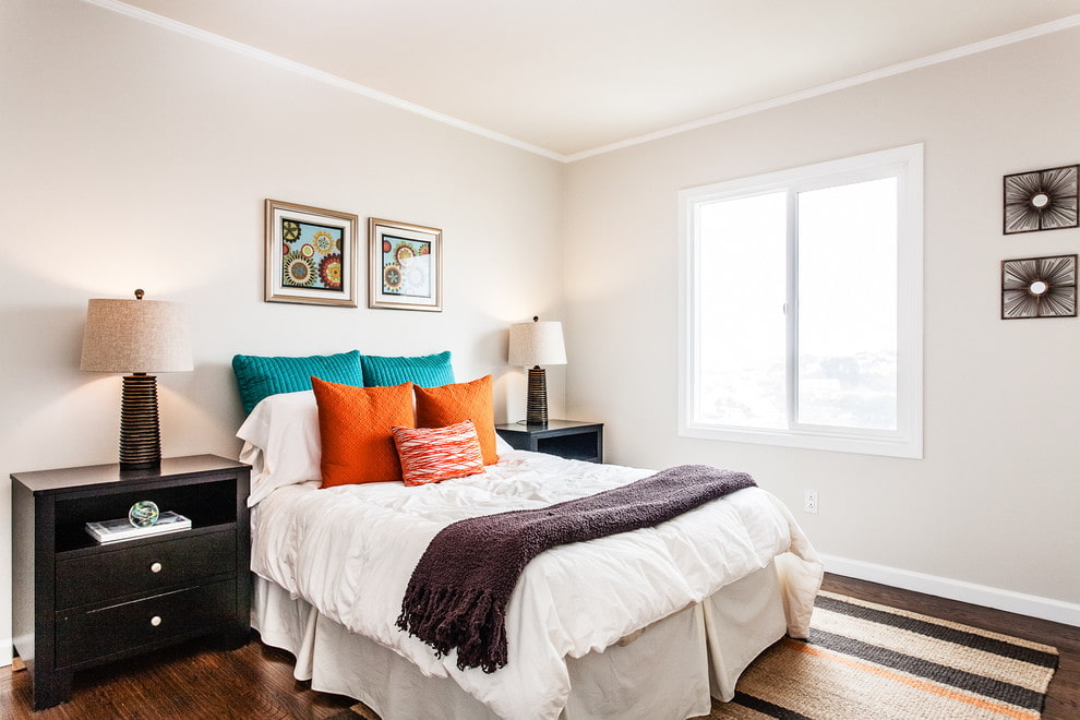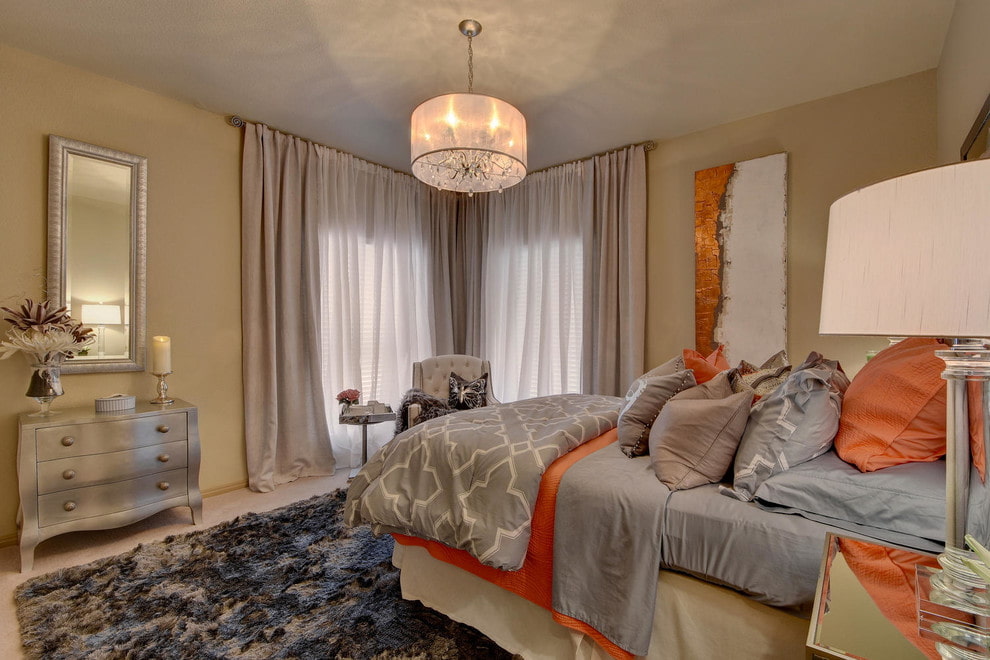 It is desirable that furniture (bed, chest of drawers, dressing table) have as few sharp corners as possible. Feng Shui adherents place bedside tables on both sides of the bed, since, according to the tradition of ancient teachings, pairing attracts good luck. In modern interiors, there are many bedrooms decorated according to the principle of symmetry.