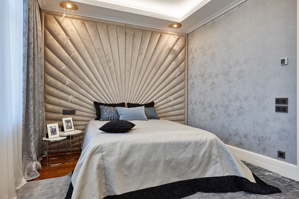 The headboard in the bedroom gives a wide scope to the imagination: it not only shapes the look of the bed and complements its functionality, but also, if desired, turns into a real art object.